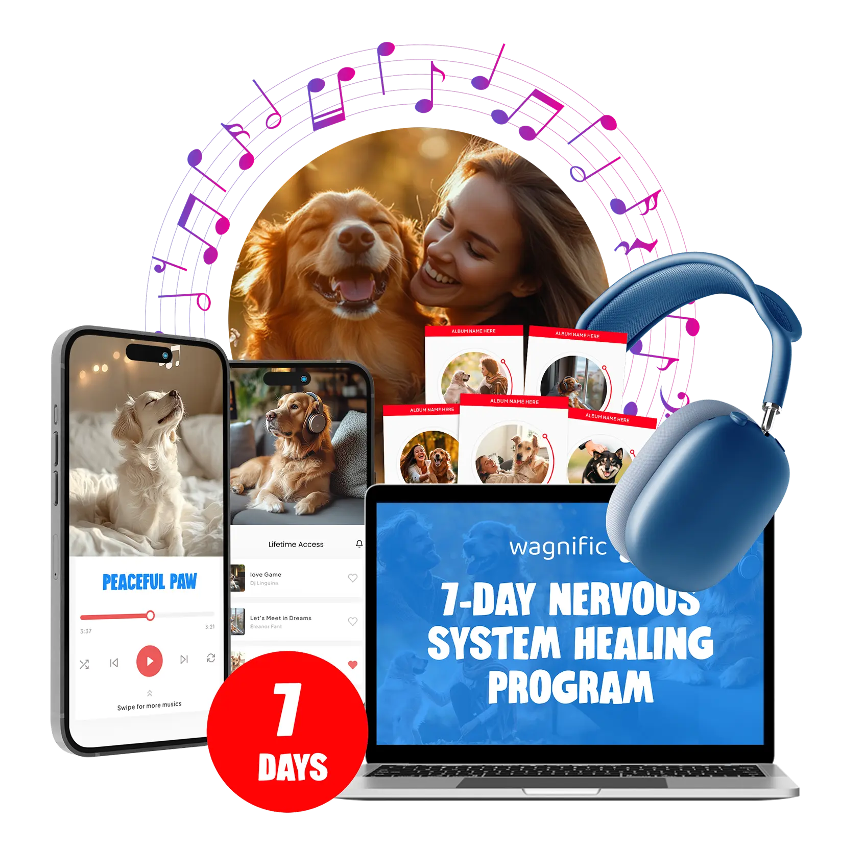 Wagnific uses unique melodies specifically designed to calm your dog's sympathetic nervous system.